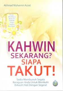 Buku ini akan meruntuhkan segala keraguan anda untuk segera bernikah. Buku ini juga sekaligus menjawab persoalan umum bagi pasangan yang tidak mahu menyegerakan pernikahan disebabkan masalah ekonomi yang belum cukup mantap.