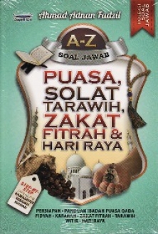 Buku A- Z Soal Jawab Puasa , Tarawih, Zakat dan Hari Raya ialah pilihan tepat bagi anda. Setiap kali kedatangan bulan Ramadhan, umat Islam seluruh dunia majoritinya bersungguh-sungguh dalam memanfaatkan bulan ini. Bulan Ramadhan bagaikan pesta ibadah bagi seorang mukmin yang benar-benar menghayati dan merasai kenikmatan ibadah di bulan Ramadhan.Anda perlu memiliki buku ini kerana ia dipersembahkan dalam bentuk soalan dan jawapan yang sering menjadi permasalahan. Merungkai setiap permasalahan yang timbul dalam ibadah puasa, tarawih, zakat dan hari raya secara lengkap serta mudah difahami. Penyediaan jadual, gambar rajah dan carta untuk membantu kefahaman para pembaca. Menyelesaikan persoalan yang berlaku dengan mengutamakan pandangan mazhab asy-Syafi'i berserta dalil.